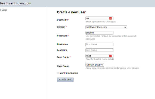 Next, make sure the domain is the one you want to create an email address for.