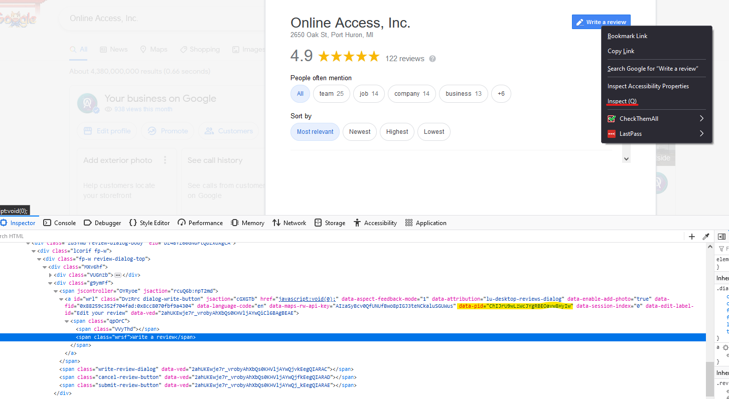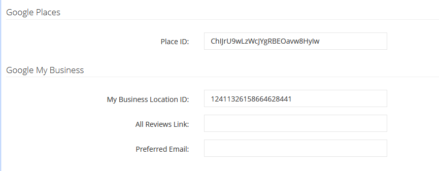 Please add the Place ID to the field on the companies dashboard under 3rd party tools, Google tools. Then scroll down to the respective field.