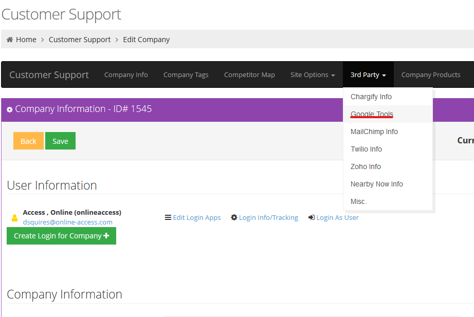 Please add the Location ID to the field on the companies dashboard under 3rd party tools, Google tools. Then scroll down to the respective field.