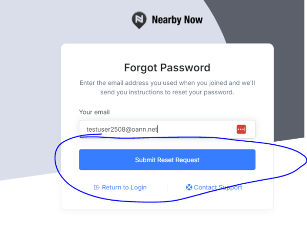 Go to admin.nearbynow.co and hit the Forgot Password? button.