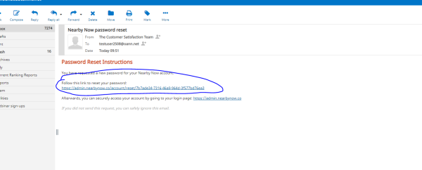 Login to the nearby@online-access.com email account in mail.pagepilot.com to get the link to reset the password.