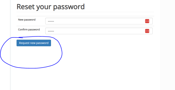 Enter the new password and confirm the new password again. Then hit the Request new password button.