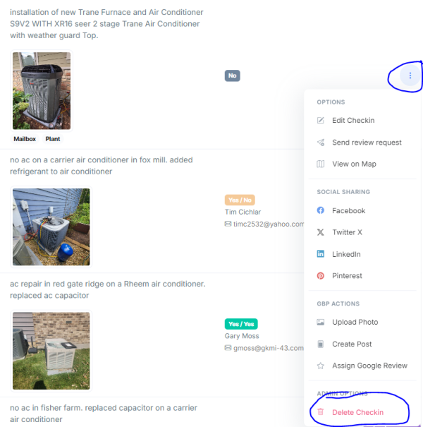 Find the checkin you are wanting and click the three dots next to it. Then select Delete Checkin.
