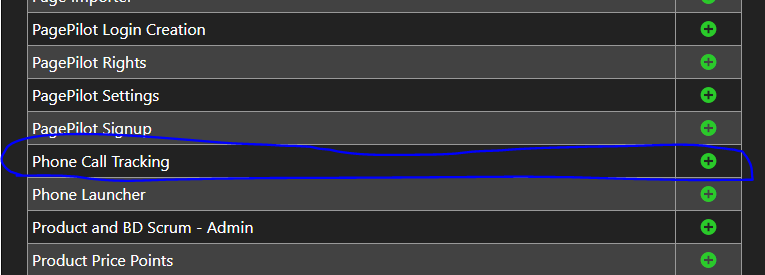 Under PagePilot Admin, scroll until you see Phone Call Tracking and click the +.