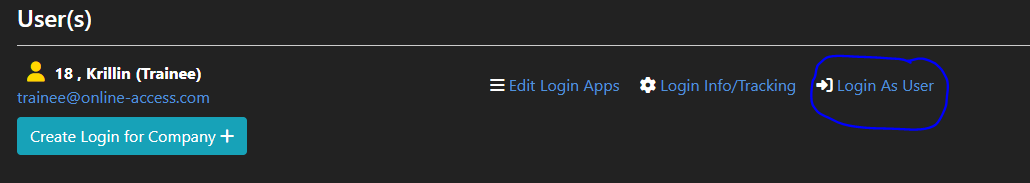 Go back to the companies company info page and click on Login As User.