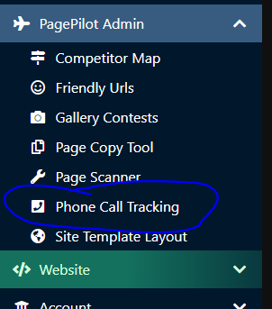 Once logged in, click PagePilot Admin on the left hand side and then click Phone Call Tracking.