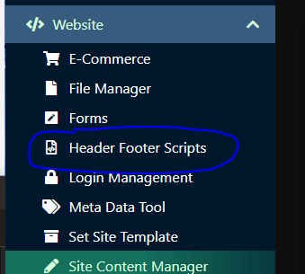 Click Website and then click Header Footer Scripts.