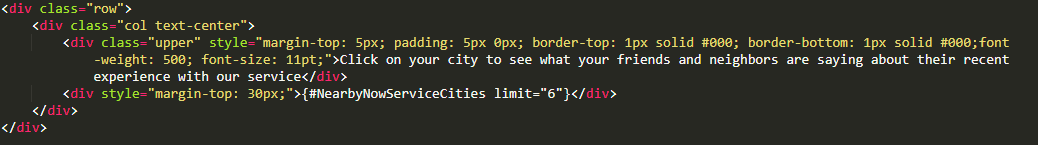 If the company has NBN, check to make sure they are enabled and the cities are populated. If so a list of cities should populate. If the company does NOT have NBN, you can remove the following code: