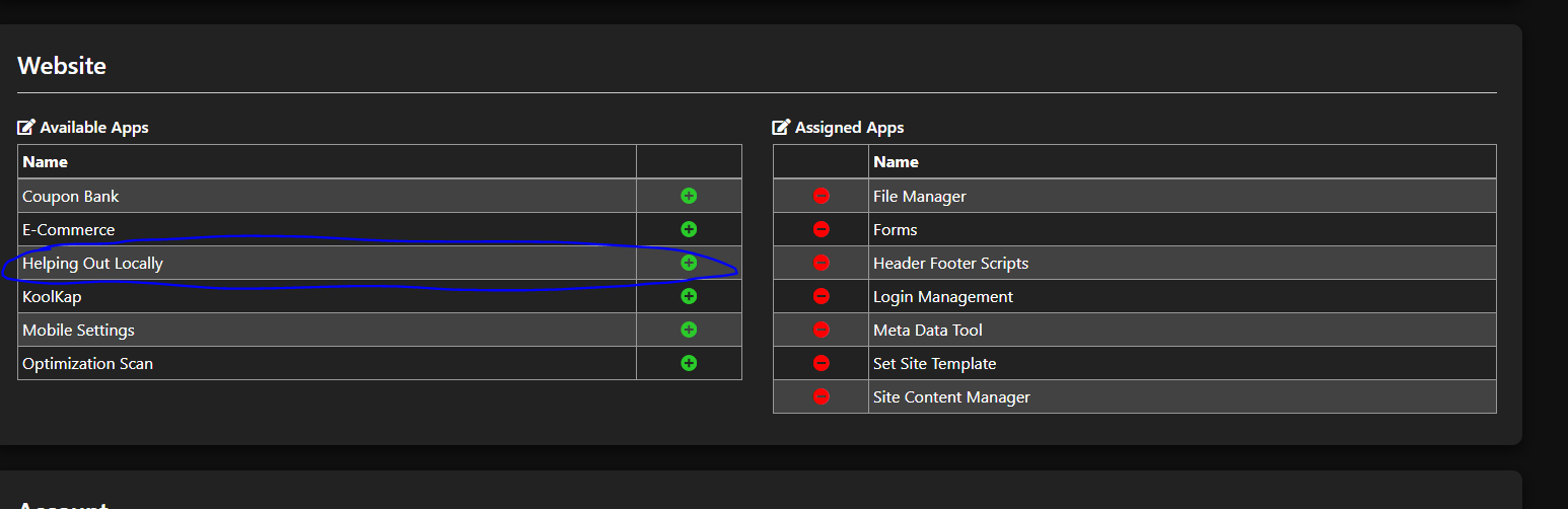 Then sign into the customers account, click Website and choose Helping Out Locally.