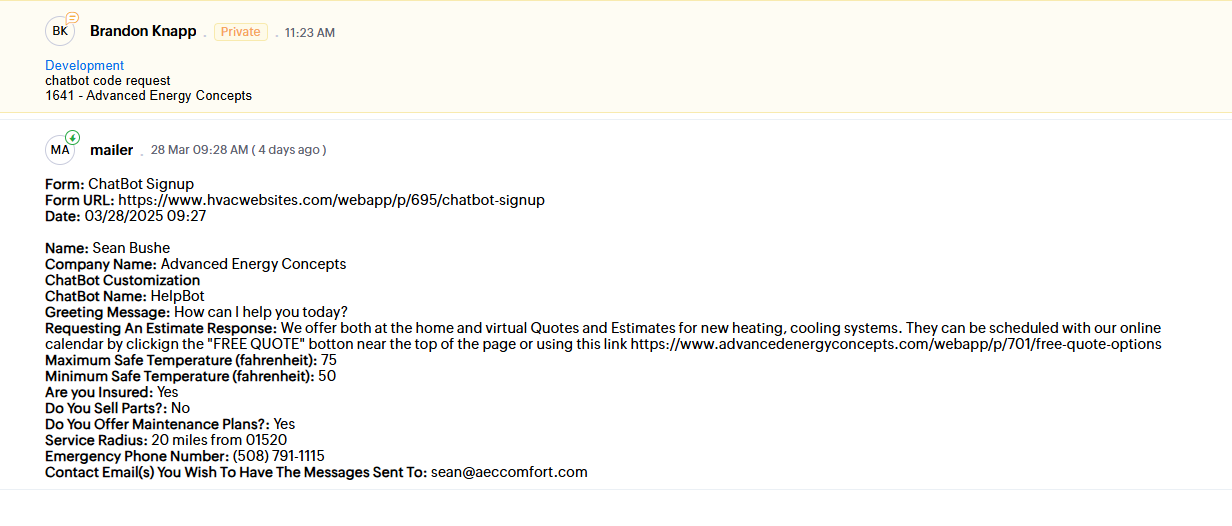 chatbot code request