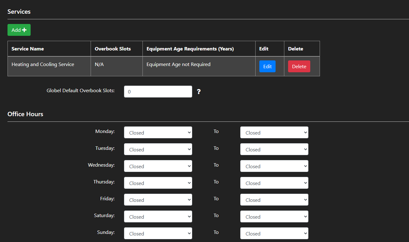 You can skip over Services and scroll down to Office Hours.