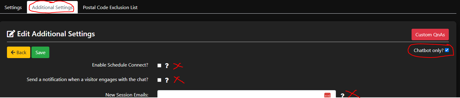Skip the first three entires and make sure you check off Chatbot only?