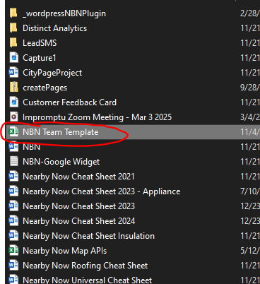 When in that folder, copy the NBN Team Template Excel sheet.