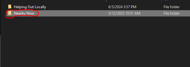 When in the folder, click on the Nearby Now folder.