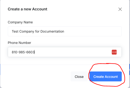 Fill out the info on the pop up and click Create Account.