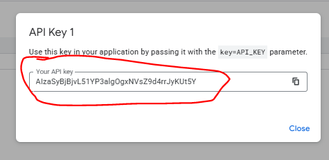 Copy the API key in the pop up