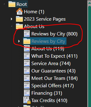 Go to Site Content Manager and move the Reviews by City folder into the customers About Us folder. Enable all the cities in the folder to be live, but not the folder itself. Also, turn on the Reviews by City page.