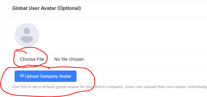 Scroll down until you see Global User Avatar. Before uploading the logo, go Canva and chose a new project. The project you should choose is new Facebook profile picture. Put the logo in there, make sure to save it as JPG or PNG and have a transparent background and download. Once that is created, click Choose File and find the picture. Once you have it, click Upload Company Avatar.