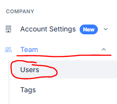 Once all the accounts are created, sign out of the users account and sign back into the company account. Click Team then Users.