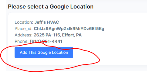 Once you find the GBP, click the Add This Google Location button.