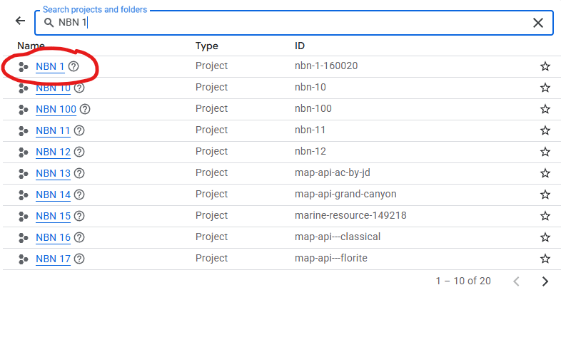 First, double check you are in the right NBN API Project in the top left hand corner.